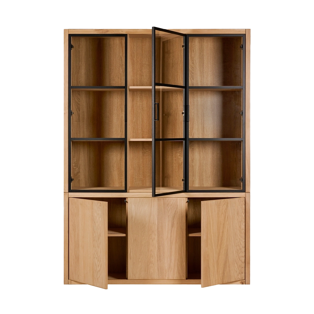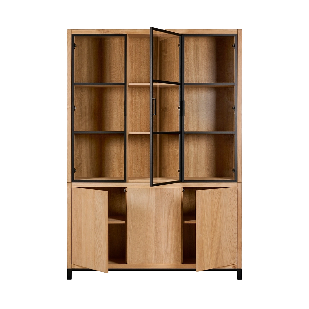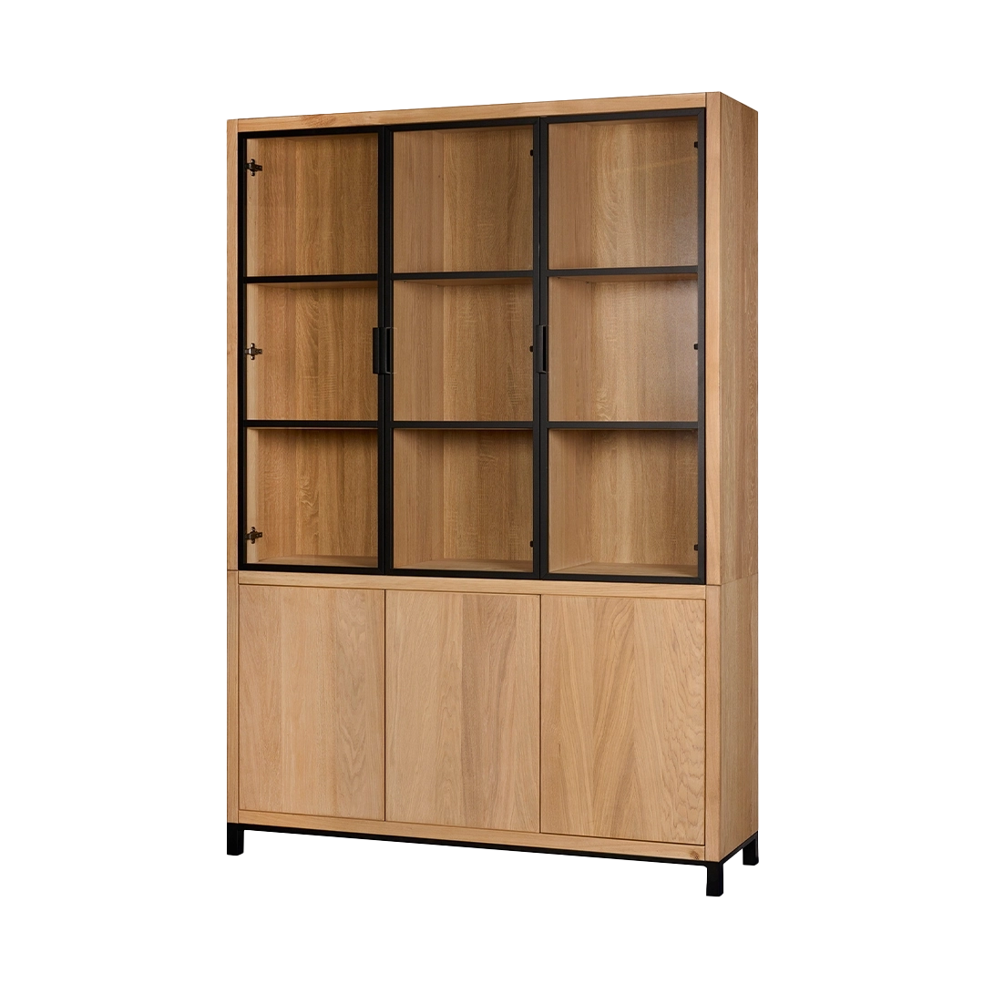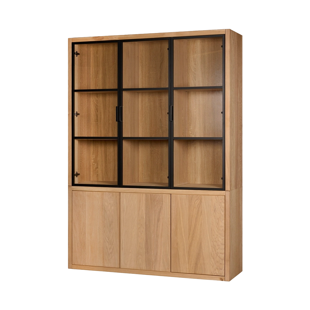 Kast van de Chazz serie gemaakt van massief eikenhout en metaal. Poten en kranslijst optioneel.