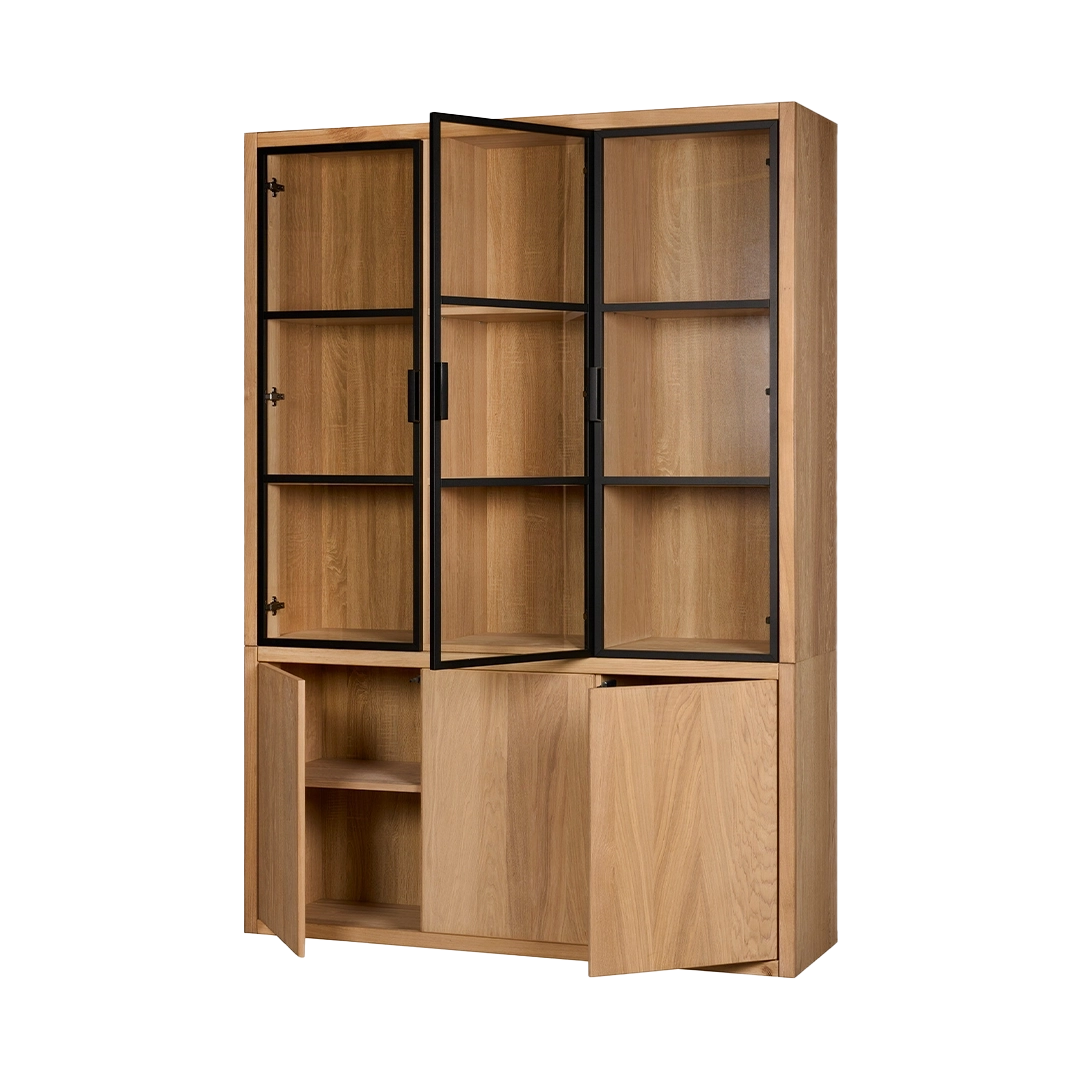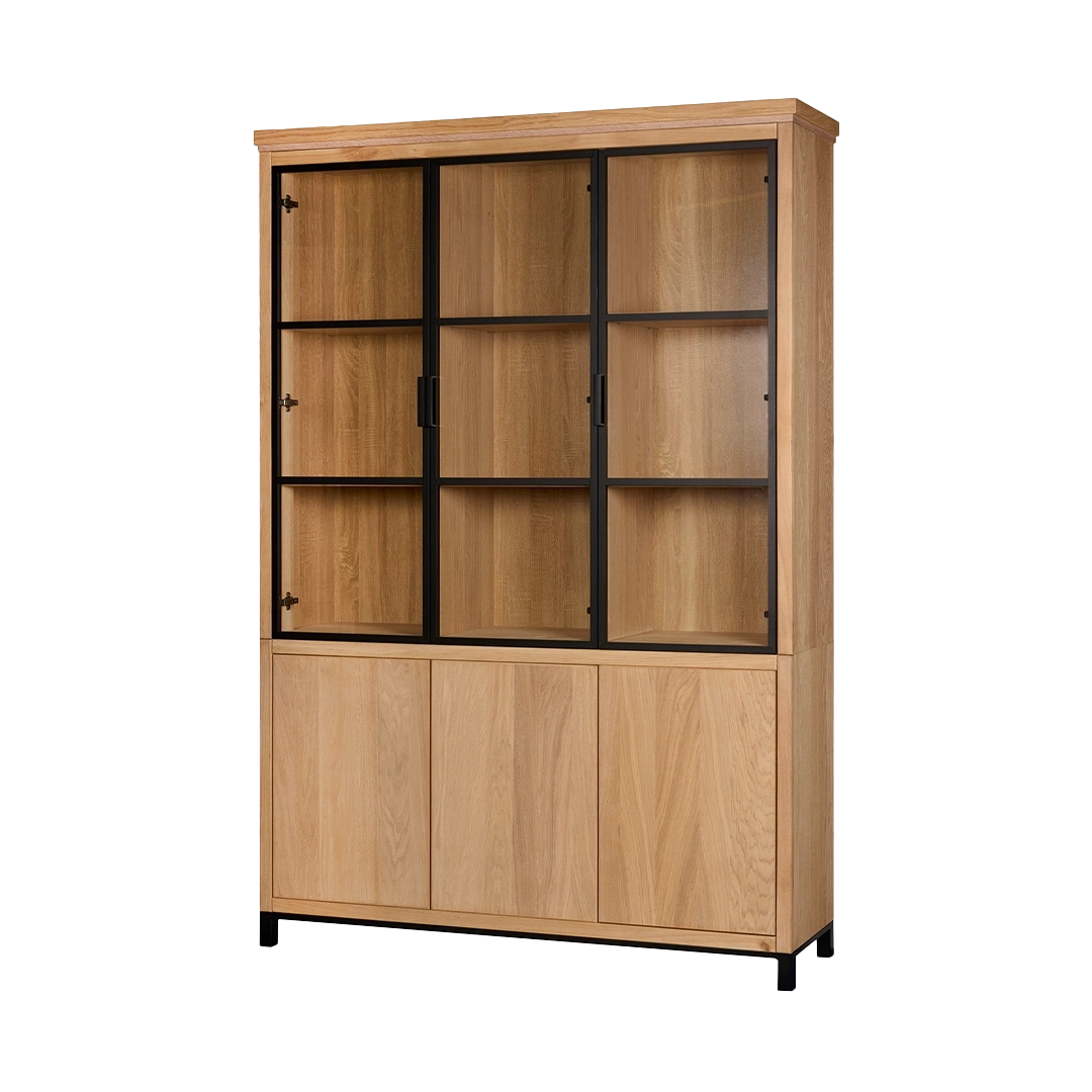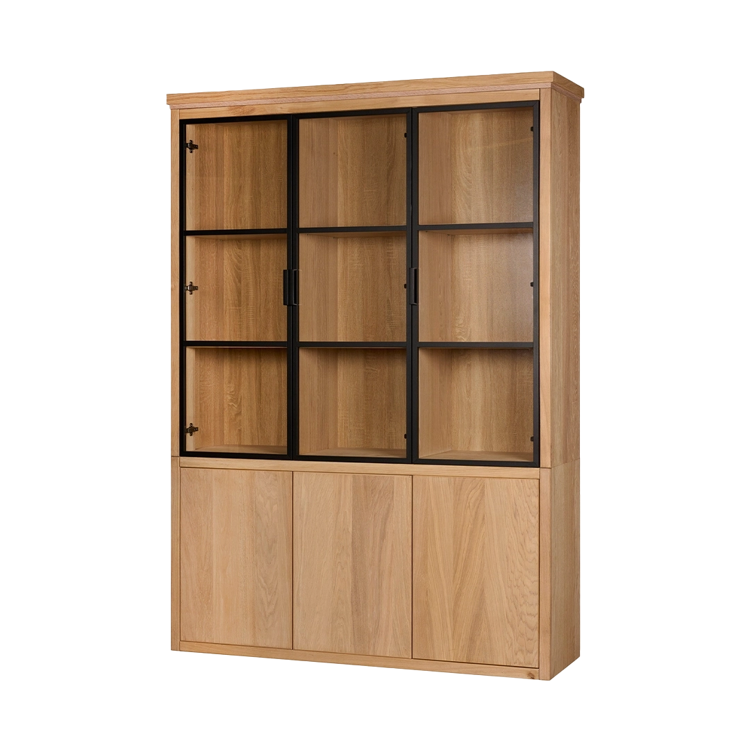 Kast van de Chazz serie gemaakt van massief eikenhout en metaal. Poten en kranslijst optioneel.