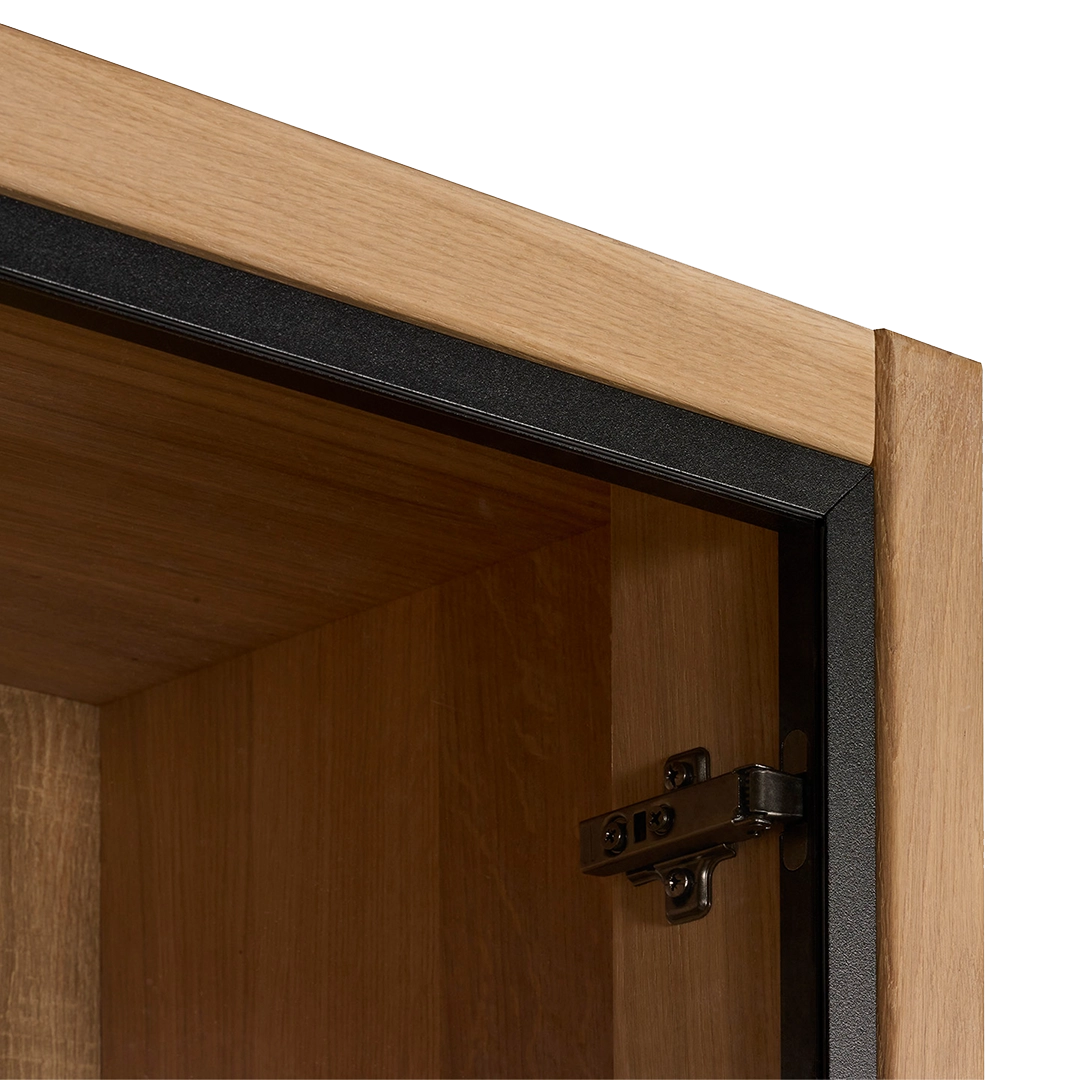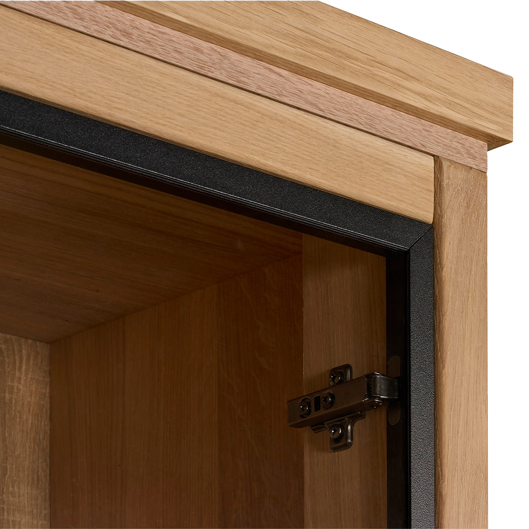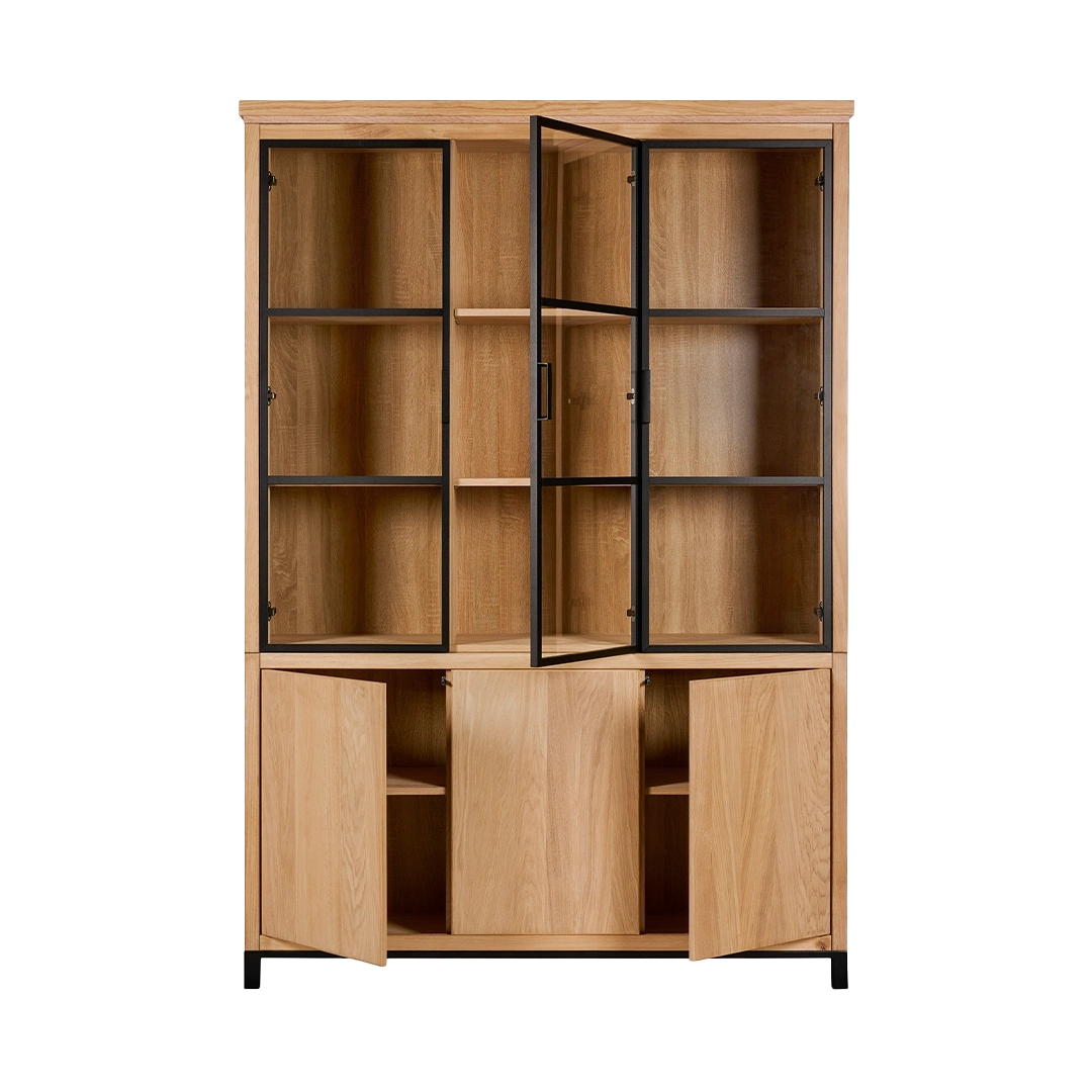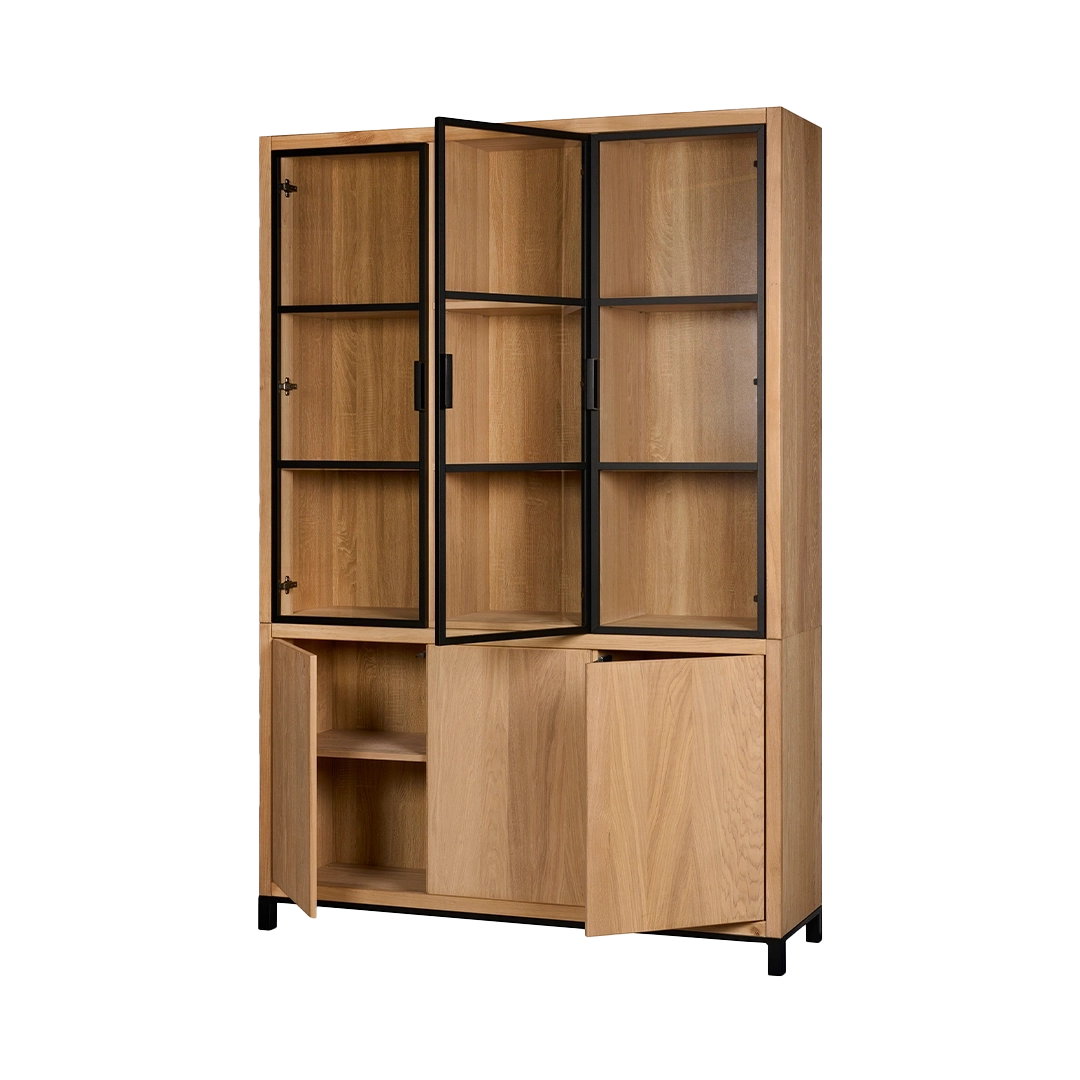 Kast van de Chazz serie gemaakt van massief eikenhout en metaal. Poten en kranslijst optioneel.