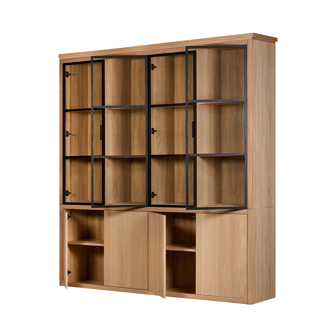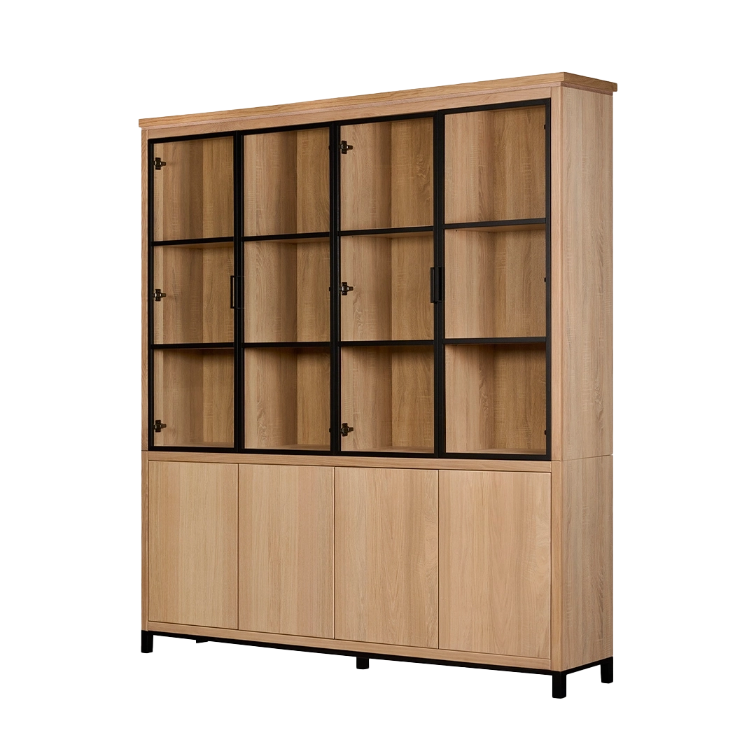 Chazz: Trendy eikenhouten meubelen met karakter. Creëer een eigentijdse en stijlvolle sfeer in je woning met het Chazz woonprogramma. Deze uitgebreide collectie meubels combineert trendy eikenhout met moderne accenten in de vorm van zwarte glasdeuren en metalen omrandingen. De meubels uit de Chazz serie kenmerken zich door strak design met subtiele details, waardoor ze perfect passen in elk interieur.