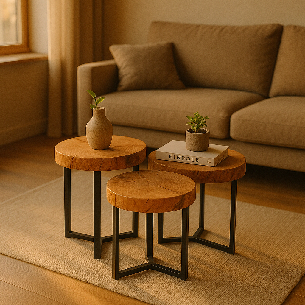 De Midi Salon 3-Delig is een verfijnde set van drie ronde bijzettafels die elegantie en functionaliteit combineren.
